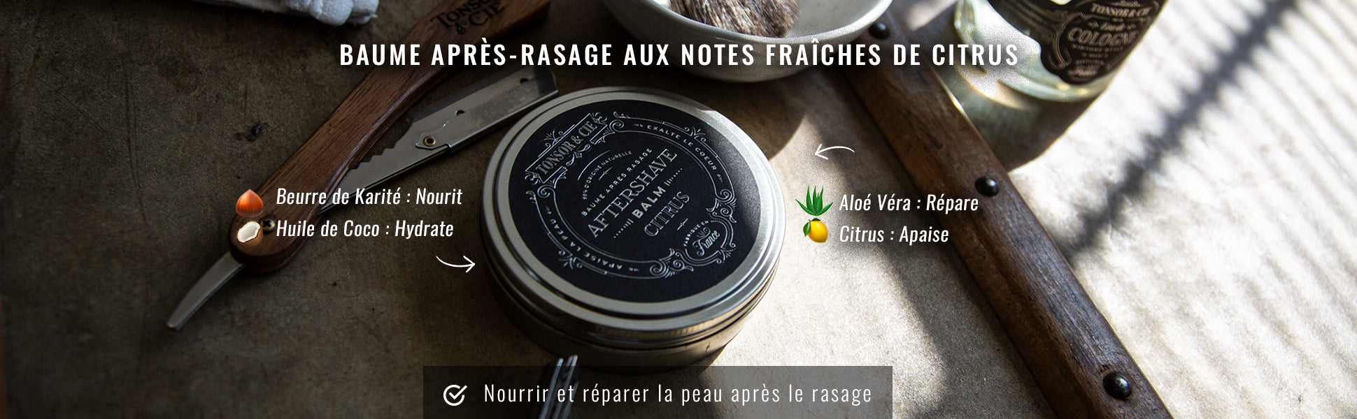 Tonsor & Cie – Citrus Aftershave Balm 50 ml – Hydrates, Soothes & Repairs the Skin – Shea Butter, Coconut Oil & Aloe Vera – Smooth Melting Texture – Formulated and Made in France